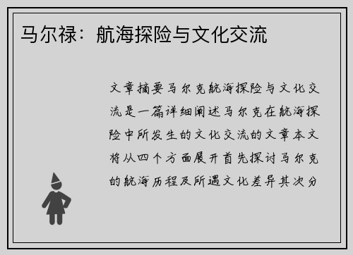 马尔禄:航海探险与文化交流